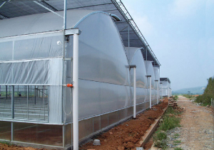 覆蓋材料頂部為無滴長壽膜覆蓋,外層防紫外線,內(nèi)層防集露;四周可以根據(jù)用戶需要采用無滴長壽膜或陽光板或玻璃覆蓋。